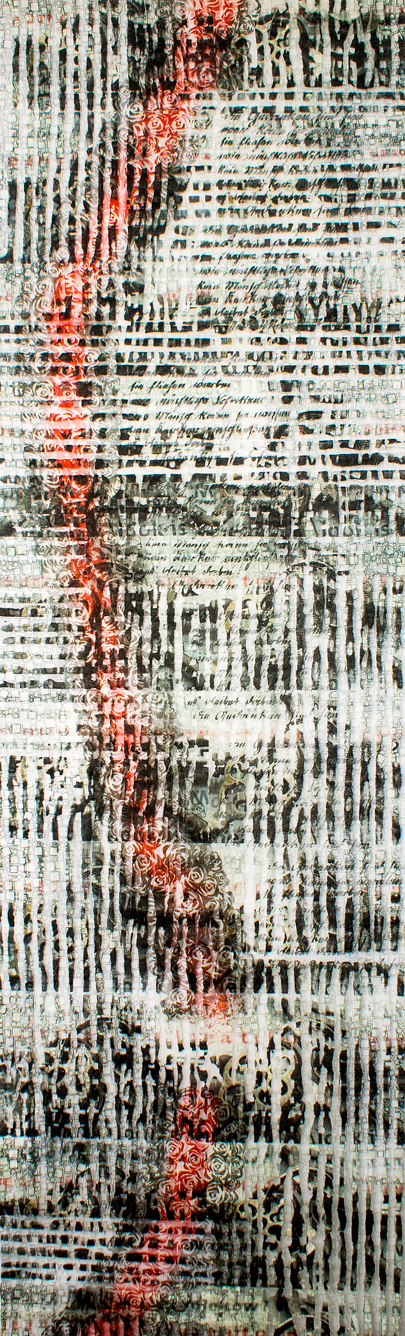 Papierlamination von eigenen Fotos, Siebdruck · 35 × 121 cm