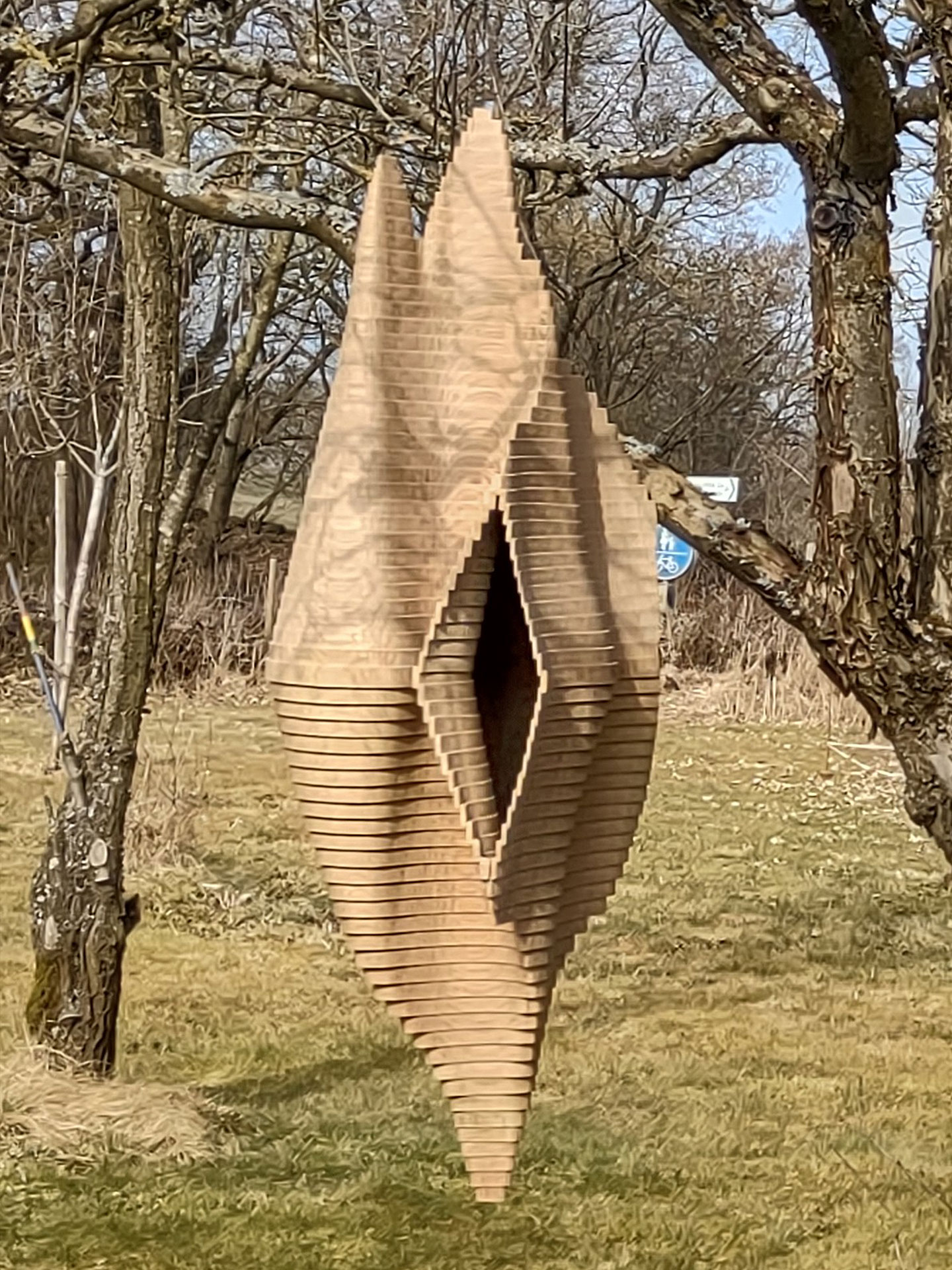 Linde/Kirsche, gesägt, montiert, unbehandelt · 65 × 155 × 160 cm ohne Ständer