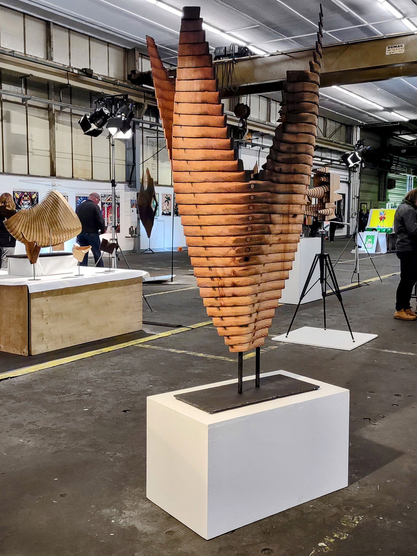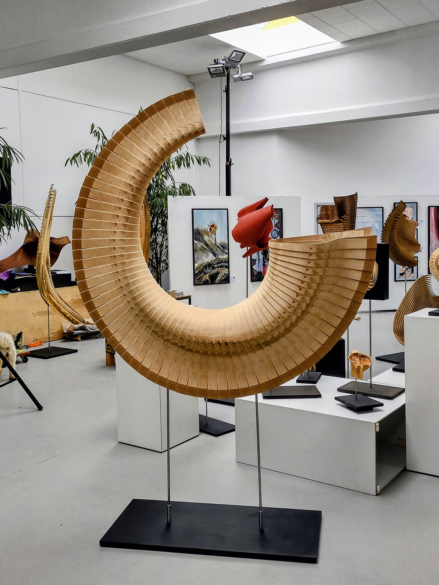 Inspiration bekomme ich von Naturformen wie Muscheln, Fossilien und Samenkapseln etc. Darüber hinaus entstehen auch geometrische Strukturen bzw. technisch anmutende Gehäuse. Aus Brettelementen oder Blöcken werden aus einem Stück mit der Bandsäge div. Elemente gesägt. Je nach Ausgangsgröße entstehen aus bis zu 125 Einzelteilen räumliche oder auch reliefartige Formen, die meistens mit farblosem Holzöl versiegelt werden. Ich verwende überwiegend einheimische Hölzer, ausnahmsweise auch exotische bzw. Altholz.