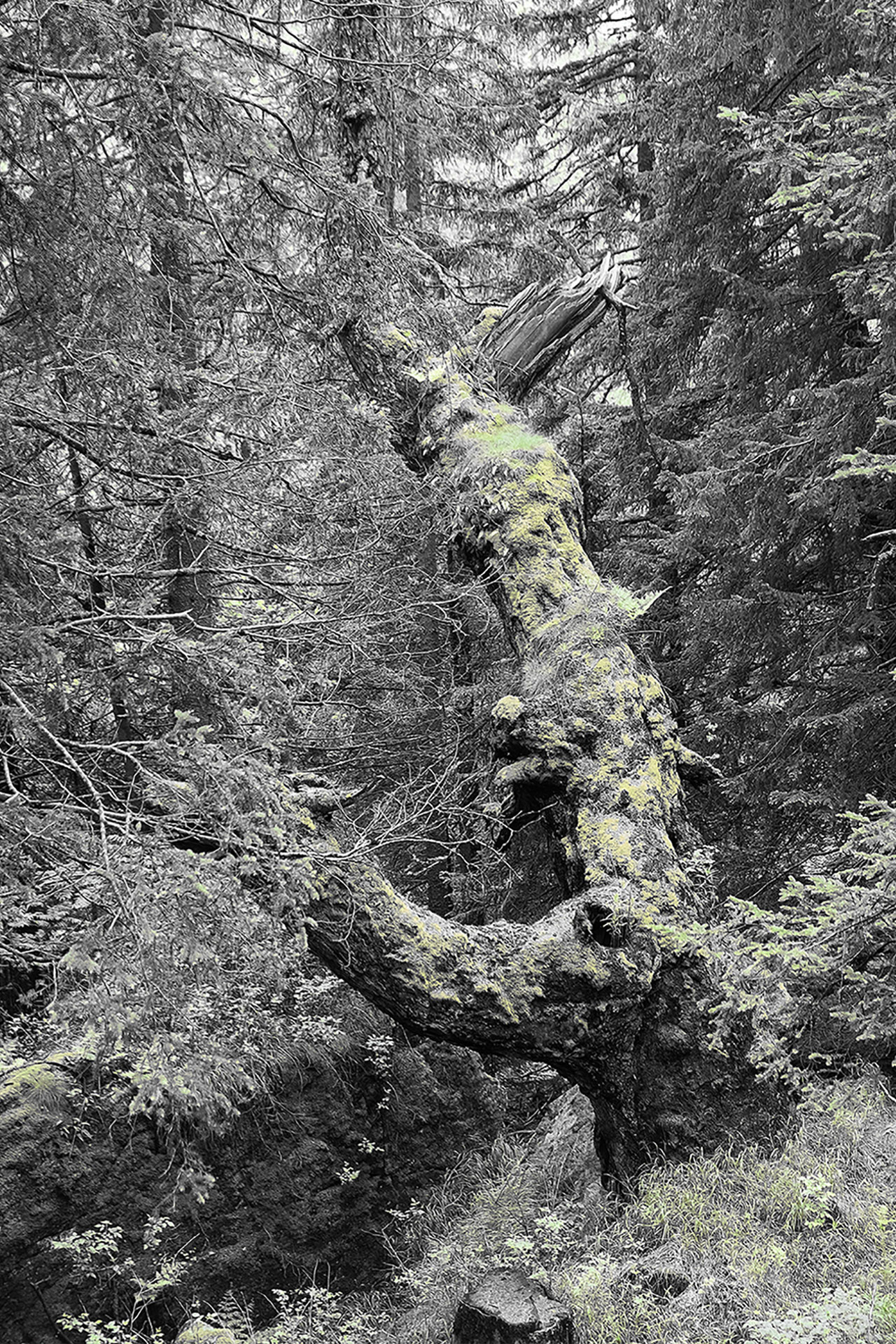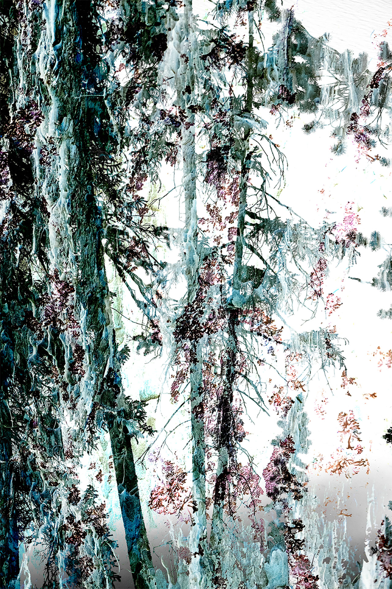 Für mich ist Fotografie immer auch verbunden mit einem Blick „hinter die Kulissen“ des Objektiven und Gegenständlichen. Durch ungewohnte Perspektiven, Mehrfachbelichtungen oder collagenhafte Überlagerungen versuche ich durch das freie Spiel von Formen und Lichteffekten eigene Wirklichkeiten zu schaffen, die durch ihr ungewohntes Eigenleben zur kontemplativen Betrachtung einladen und eigene Geschichten erzählen. Bei meinen Farbcollagen arbeite ich in der Regel digital, in dem ich durch Überlagerung von farbigen und schwarz-weißen Motiven eine Bildsprache schaffe, bei der die vertraute Naturnähe der Sujets von überraschenden surrealen Farb- und Lichtmustern durchbrochen wird. Die rasante Digitalisierung der letzten Jahrzehnte hat auch vor der Natur nicht haltgemacht: Umfassende Klima- und Umweltdaten, GPS-Koordinaten von Vögeln und anderen Wildtieren sind nur zwei Beispiele für diese Entwicklung, die uns online und satellitengestützt unsere Umwelt aufschlüsselt und wissenschaftlich deuten lässt. Doch je mehr wir uns dieser Datenflut gegenübersehen, desto stärker wird die Sehnsucht nach einem ganzheitlichen, mit allen Sinnen und unmittelbar erfassbaren Erleben von Natur. Der Wald spielt dabei gerade in unseren Breiten immer noch und damit ganz in der Tradition der Romantik eine zentrale Rolle. Mein „Lob des Waldes“ ist in diesem Sinne eine Zwiesprache mit der Natur und eine Hommage an die inspirierenden und erdenden Kräfte des Waldes.